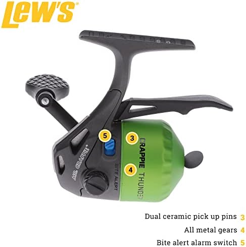 **Lew’s Crappie Thunder Underspin Fishing Reel – 4.3:1 Gear Ratio – Right or Left-Hand Retrieve – Crappie Thunder Green**