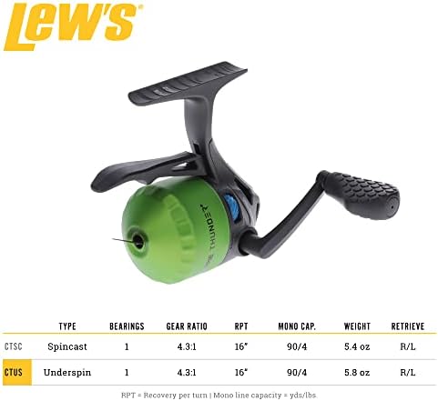 Lew’s Crappie Thunder Underspin Fishing Reel, 4.3:1 Gear Ratio, Right or Left-Hand Retrieve, Crappie Thunder Green